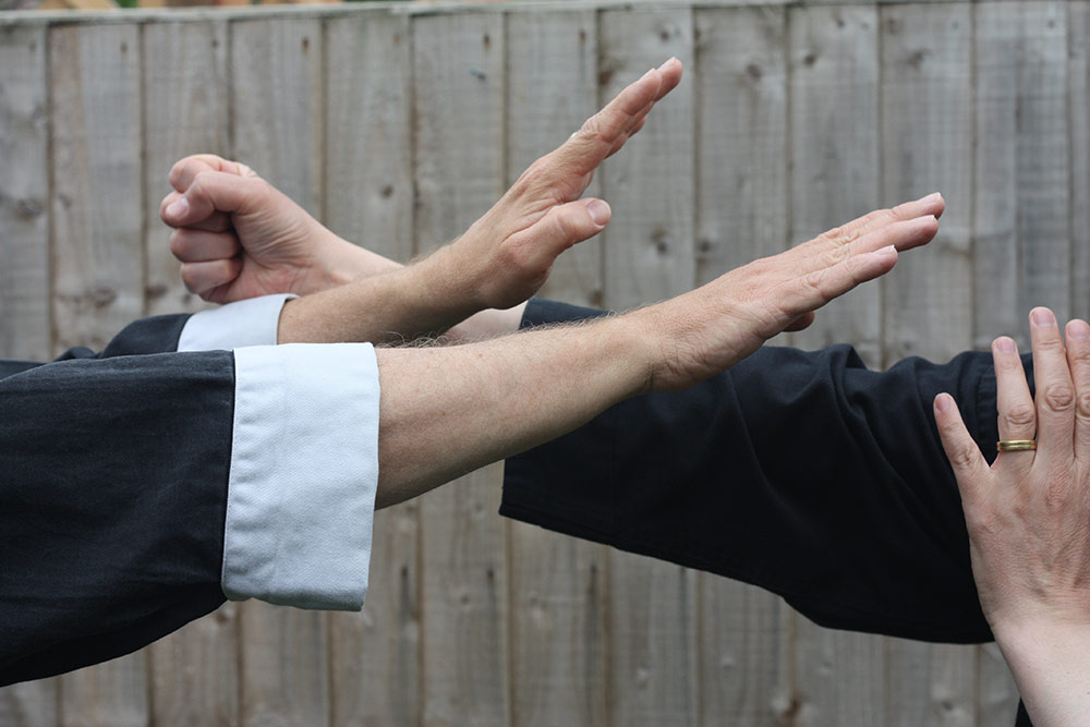 Gum Sau, or pinning hand is used to deflect low attacks like kicks and knee strikes to the the ribs. It is also used to pin the opponents hands in Chi Sau.
