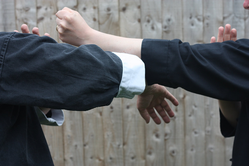 Kwan Sau is a relatively complex rotating arm motion which can be used to block or roll out of a trap and is found in the dummy form.
