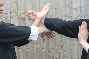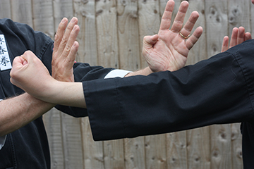 The Bong Sao or wing arm is a deflecting technique that features quite heavily in the Wing Chun forms. It is performed by rolling the forearm out and the raising the elbow up.